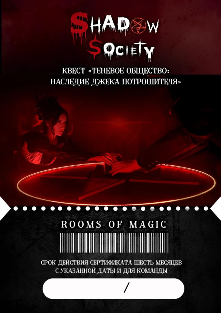Хотите подарить эмоции, которые точно запомнятся? Подарочный сертификат на квест «Теневое Общество» — это мрачная атмосфера, сильные впечатления и настоящий командный драйв.
